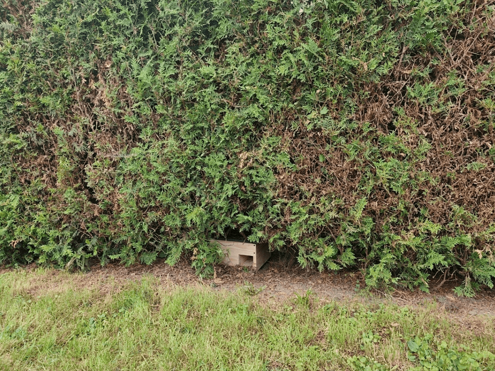 Domek dla jeża najlepiej ustawić w cichym i zacienionym miejscu, np. pod krzakiem lub przy żywopłocie.